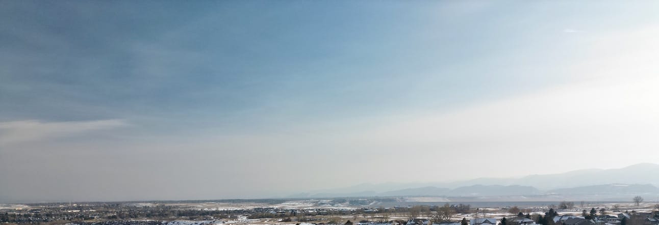 Unlike the panorama above, most of my photos are representational. Earlier that same day while running errands I took some photographs of Denver’s Central Business District from the south, in Littleton (where I lived, once or twice). But a photograph of a city skyline becomes almost abstract in the density of development, and the complexity of representation, both in and around the city center. Here, I also try to layer the composition with color, separating the desaturated distance in the perspective of atmospheric haze from the foreground of subtly saturated colors.