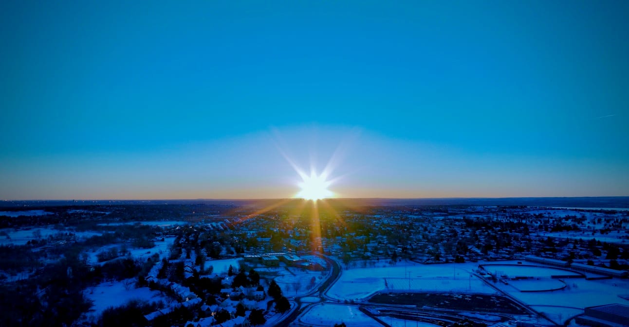 Sunrise over Bear Creek School (K-8), Lakewood Colorado, taken 22 February 2025