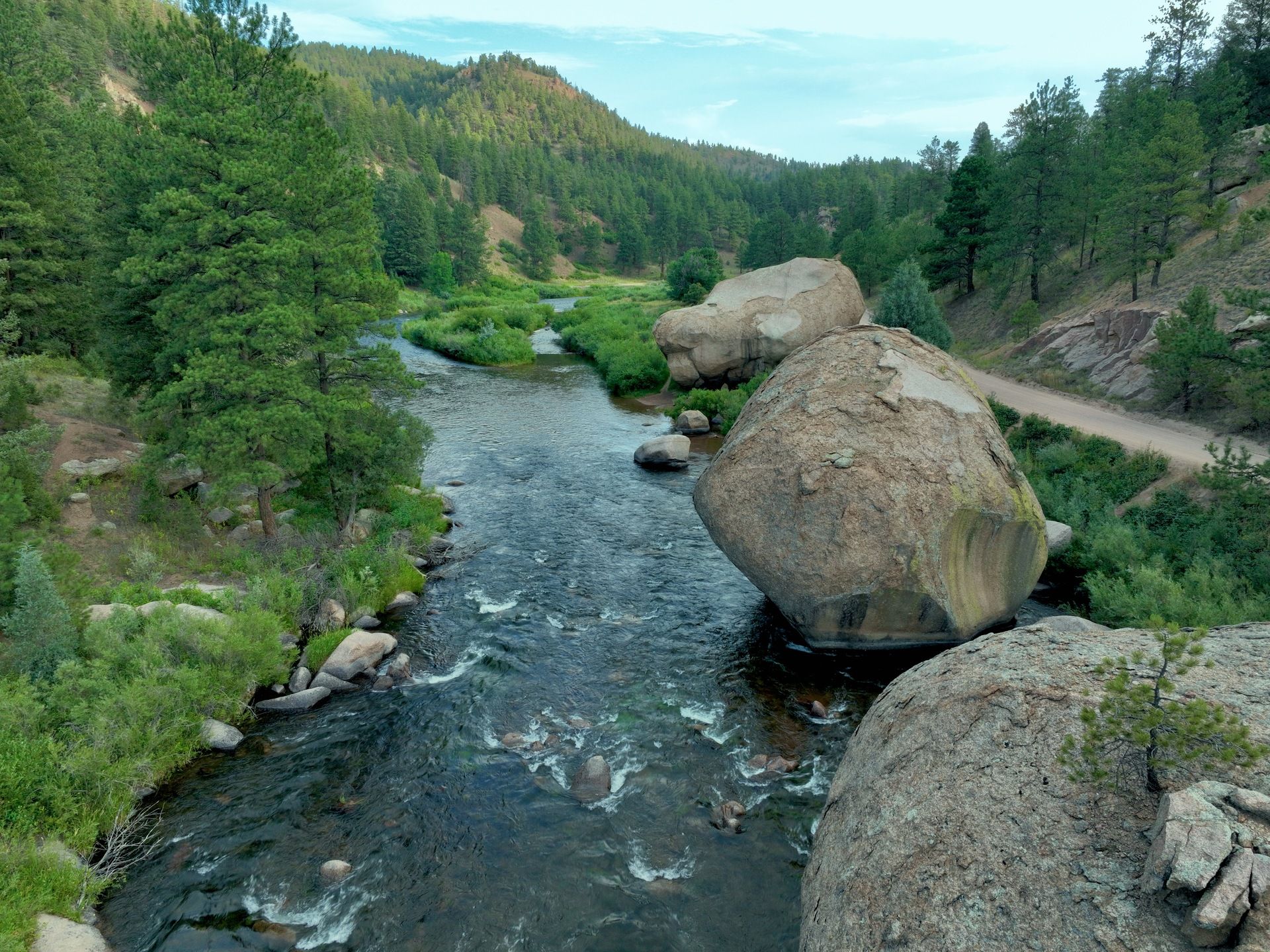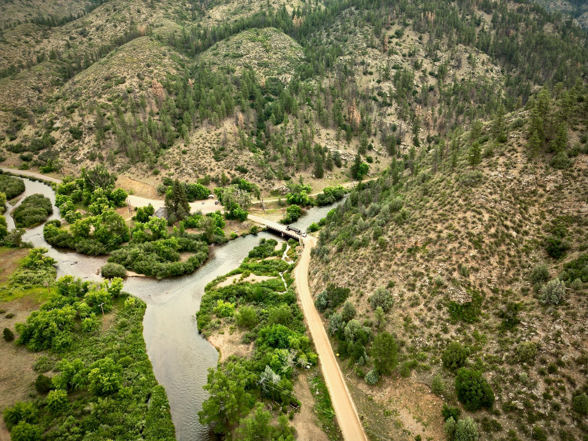 Two Forks, the confluence of the South Platte River, taken with a DJI Mini 3 Pro, 5 August 2025.