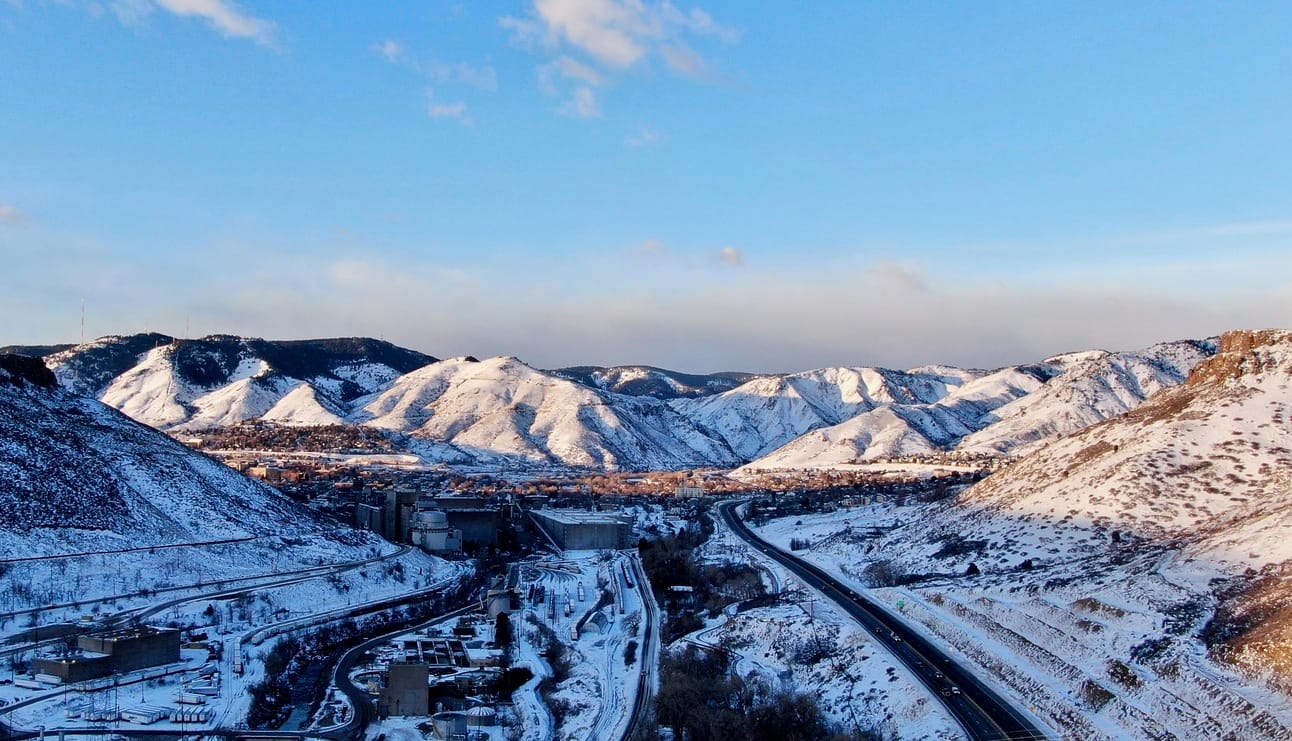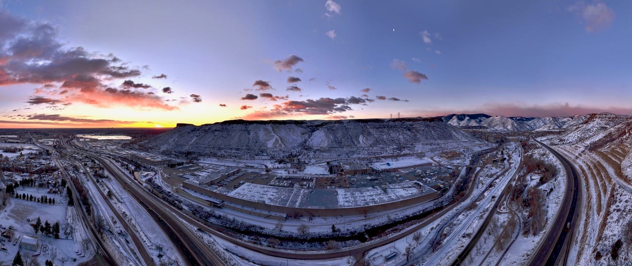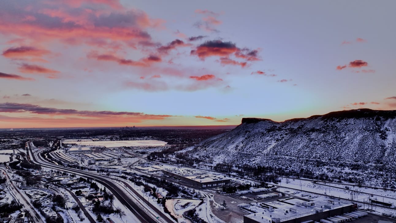 Golden’s manufacturing base and Clear Creek beneath South Table Mountain, 22 January 2025.