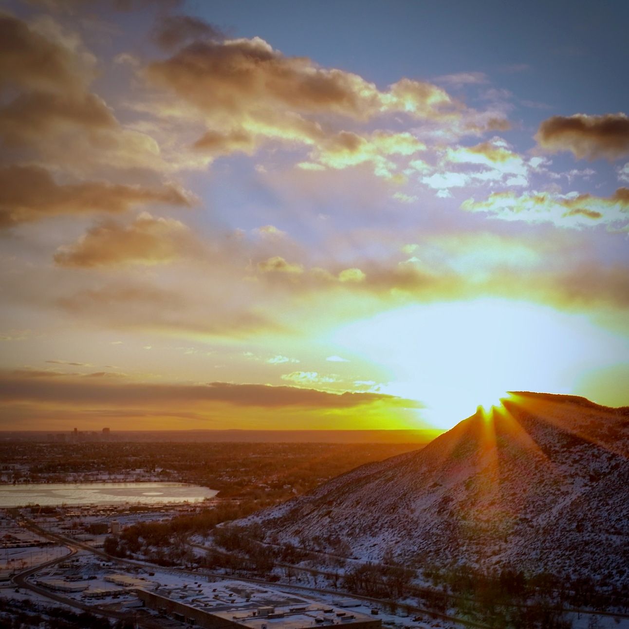 I completed my pre-flight and launched, as it was well worth doing the research simply to get to this point! The colors before the sunrise were dramatic. And once the sun rose, the valley even lent itself to a “circular” interpretation with a DJI Mavic 3 capturing the 360° panorama. The highway thoroughfare snakes along the south side of North Table Mountain, running high upon the hillside opposite the glass factories and the breweries for Moulson Coors.
