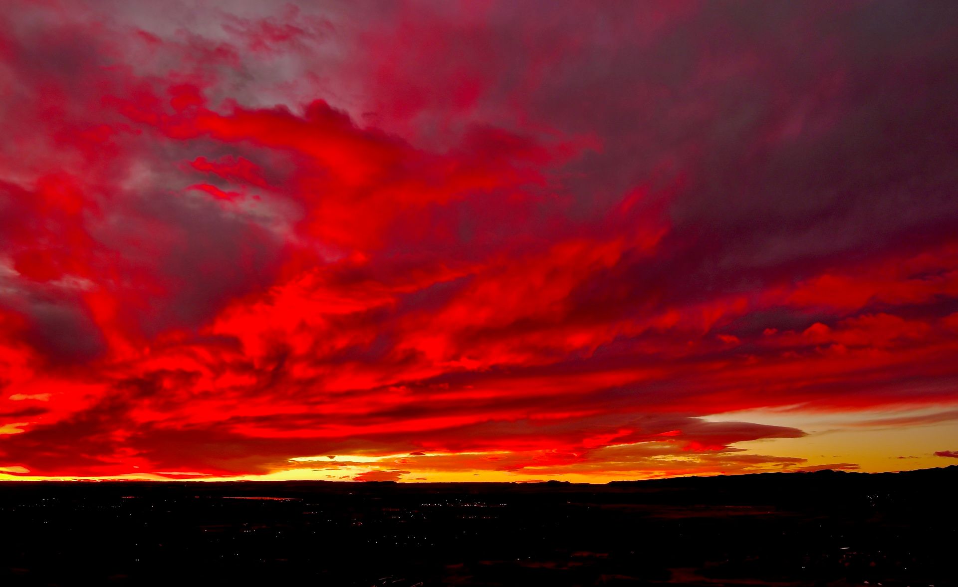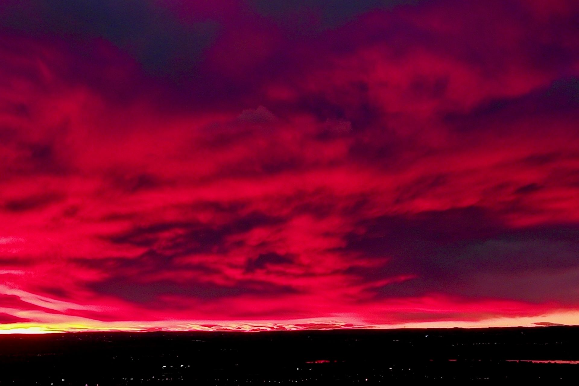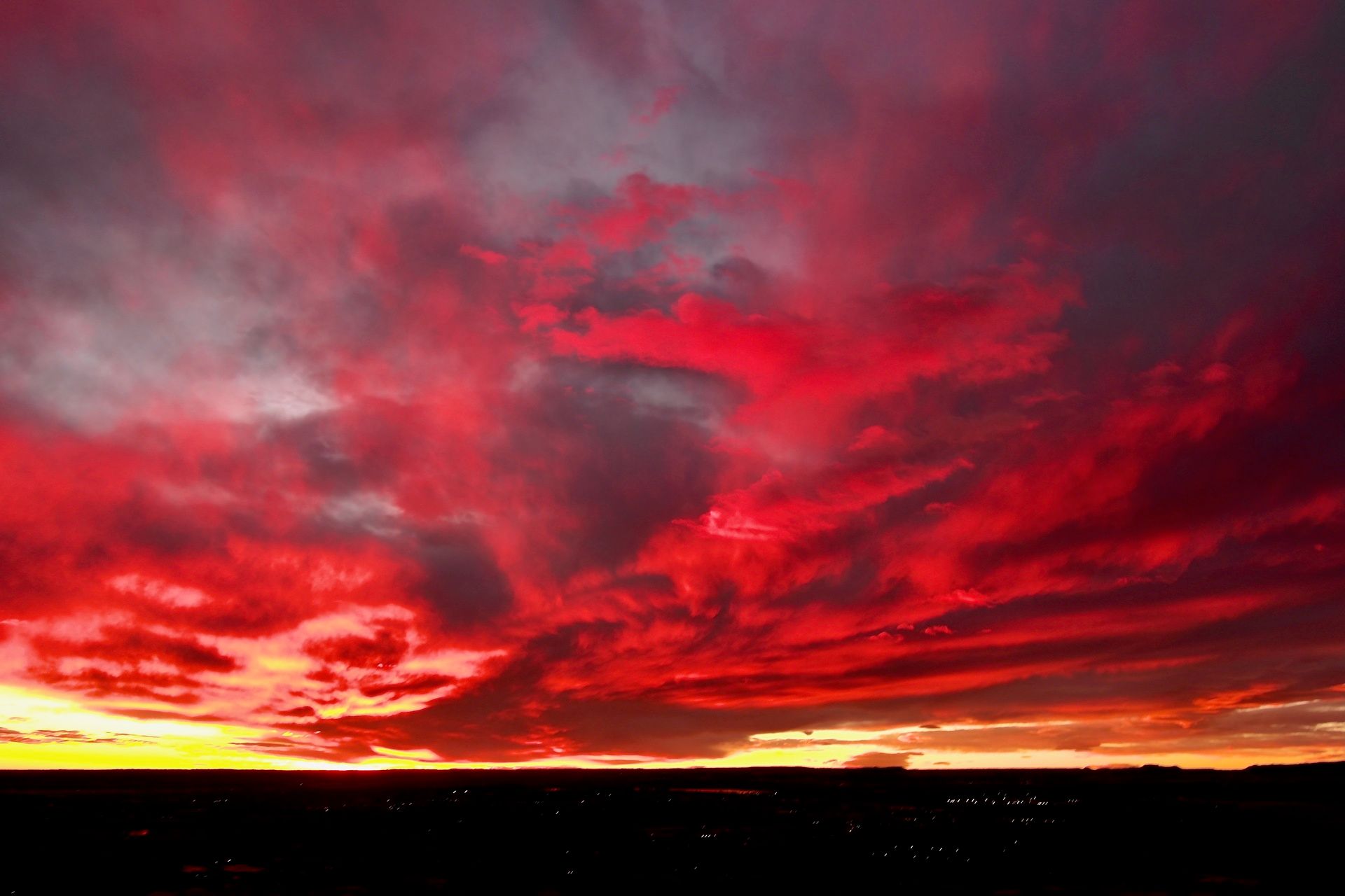 Wide-angle view before sunrise of the clouds to the south of Denver.