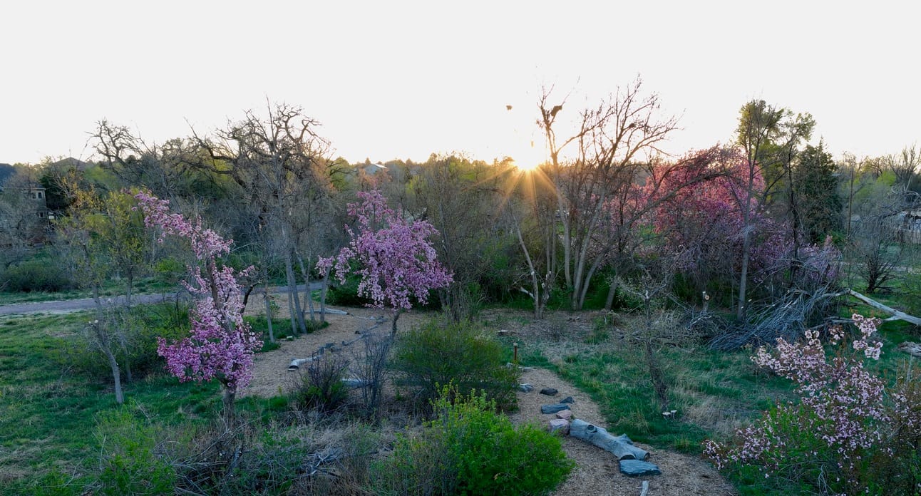 Springtime in Colorado is a study of contrasts. From extreme changes in weather on a large scale to the evolution of a tiny, community oriented, park, on the smaller side of the scale, one can only hope for the best when change is so sudden, and so sharp. Days of warmth came to an end with a snowstorm, and I feared for the newest, and most fragile additions to the Colorado HIGH SKY: tree blossoms.