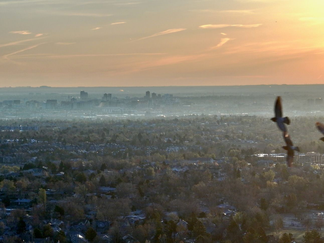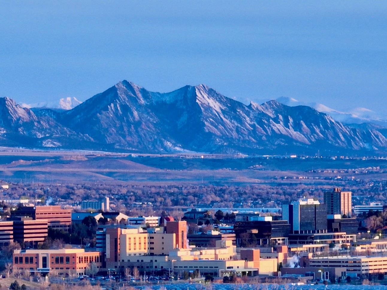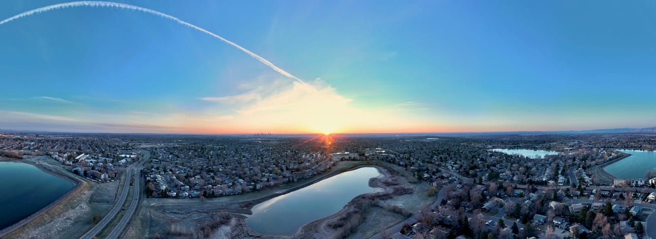 The skies over the metro Denver area cleared at sunrise for the first time in a week. The panoramas covering the breadth of the Front Range revealed Pikes Peak escarpment in the south, to Larimer County in the north.