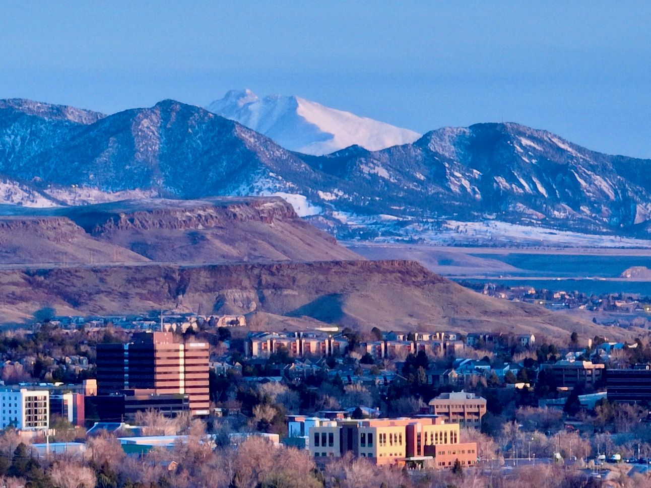 The views behind downtown Lakewood and the two mesas in Golden to the northwest showcased the appearance of Long’s Peak above the rest. It’s almost warm enough to ride my bike up to Wright Park, near downtown Lakewood, but I first have to complete moving into my new home!